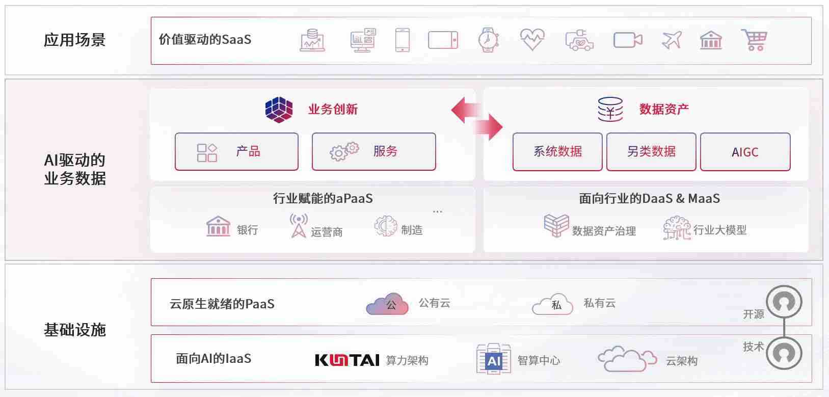 数字时代,,围绕企业数字化转型的关键要素,,,今年会数码开创性的提出数云融合战略和技术体系框架,,着力在云原生、、、、数字原生、、AI原生和信创产业上架构产品和服务能力,,为处在不同数字化转型阶段的快消零售、、、汽车、、金融、、、医疗、、、政企、、、教育、、运营商等行业客户提供泛在的敏捷IT能力和融合的数据驱动能力,,,构建跨界融合创新的数字业务场景和新业务模式,,,助力企业级客户建立面向未来的核心能力和竞争优势,,全面推动社会的数字化、、、智能化转型升级。。。